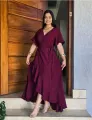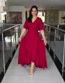 Vestido midi envelope magenta com decote em V, mangas curtas e faixa para amarrar na cintura. Caimento fluido e saia com volume suave para um visual elegante e moderno. Perfeito para festas, almoços especiais ou looks sofisticados do dia a dia. Confortável, com acabamento de qualidade que valoriza a silhueta. Tam 40 ao 44